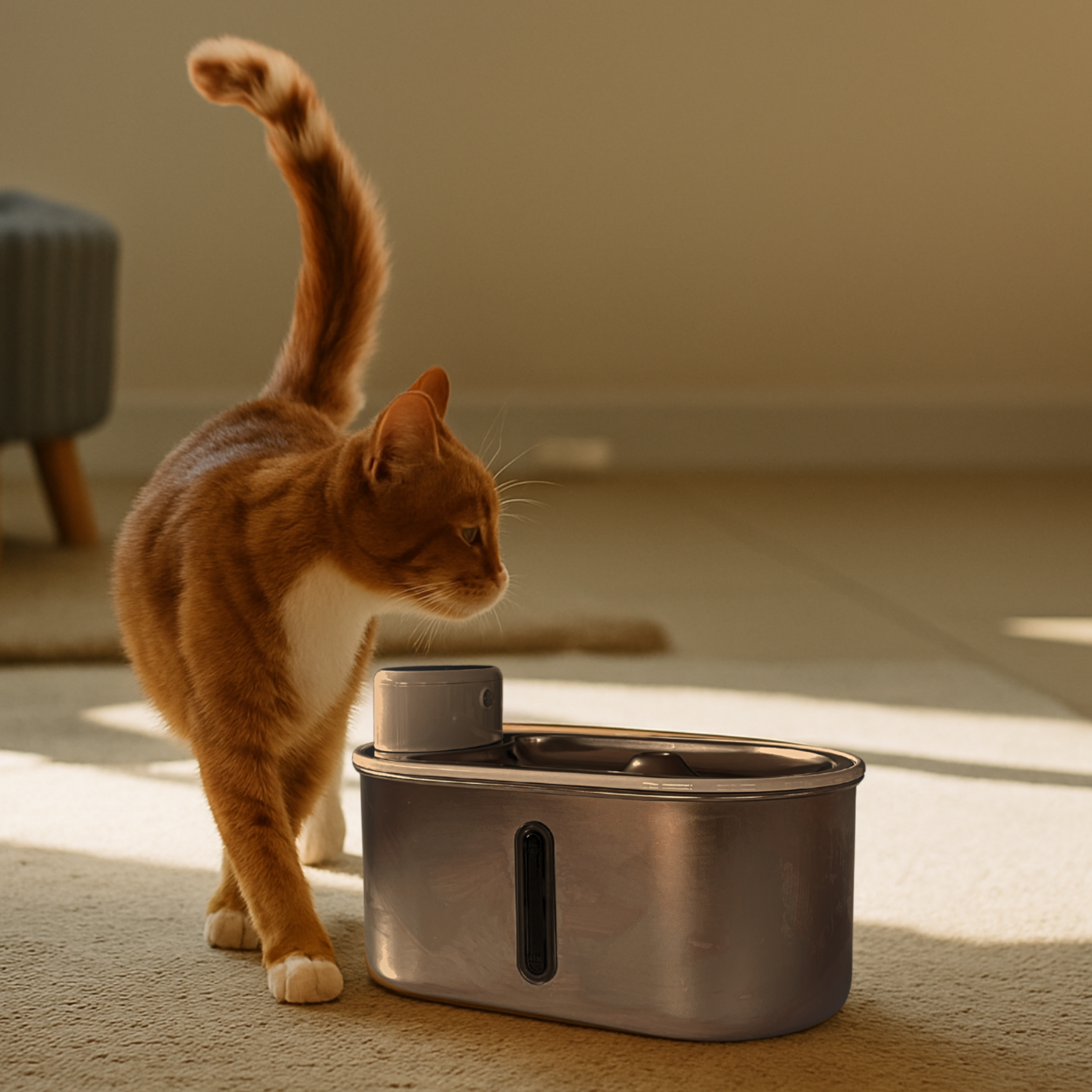 Getting your cat used to the Purr-Flow is simple. Start by gradually introducing your cat to the Purr-Flow to ensure a smooth transition. To encourage your cat’s curiosity, place the Purr-Flow in a familiar location where your cat spends time. You can even keep their current water source nearby during the adjustment period. Cats are naturally attracted to moving water, so turning on the Purr-Flow can help spark their interest. If needed, show your cat how the water flows and let them explore at their own pace. Find out more about helping your cat get comfortable with the Purr-Flow.