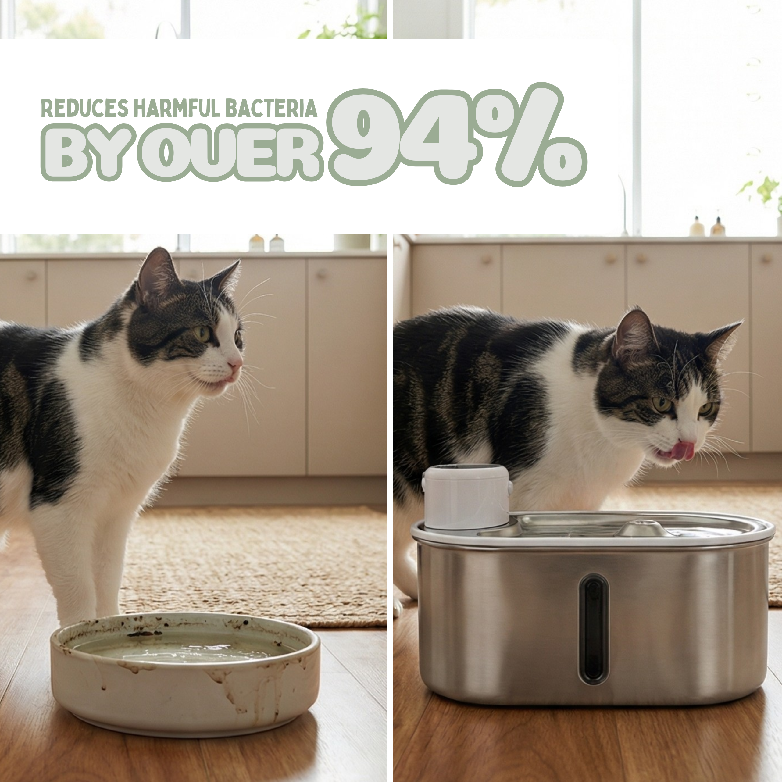 - Continuous Fresh Water: Prevents stagnation with a constant flow of clean, filtered water.
